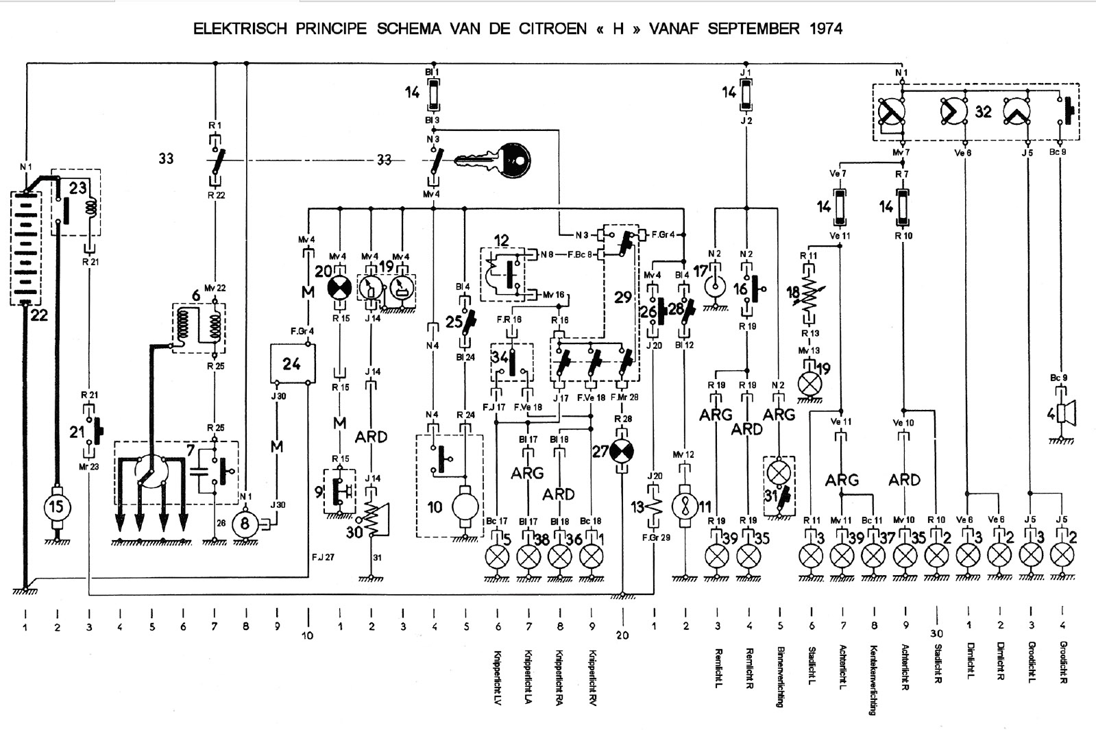 Hij heeft ook geen zekering. Een heel eigen leiding van de accu naar de sleutel, met z'n eigen contacten, dan direct naar de bobine.