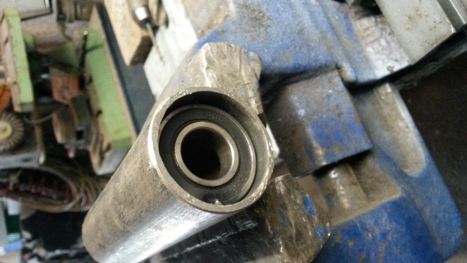 Dus moest eerst het fusee stuk uit gebouwd worden om het restant van het lager er uit te persen. Na deze vlotte reparatie ( 1,5 uur) kon ik weer verder gaan met het zoeken naar de storing