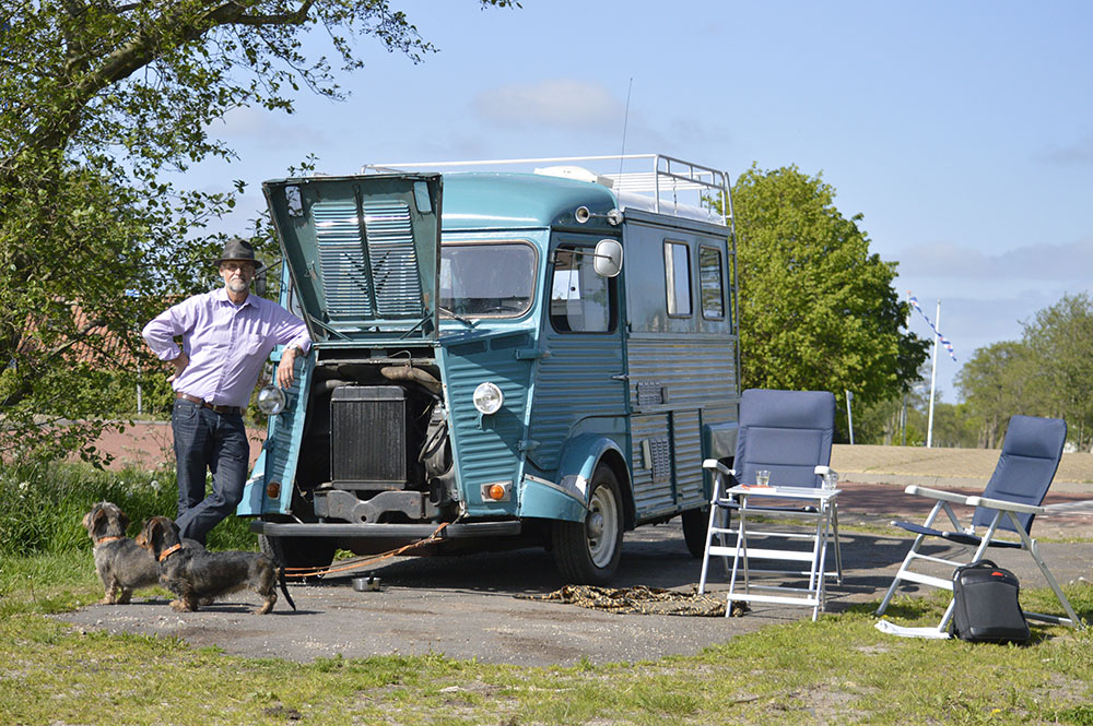 Maar nu de HY. We hebben jaren (achter de TA) met een BIOD-caravan uit 1964 gereden. Met veel plezier. Maar het gesleur ermee achter de TA vergde zijn tol, zowel voor de auto als voor mij. Bovendien moest er veel aan gebeuren en daar had ik toen niet zoveel trek in. Maar we begonnen de vrijheid die een eigen mobiel onderkomen met zich meebrengt, wel te missen. Hotelletjes onderweg is leuk maar ook niet ideaal. En een oude camper vonden we (gelukkig) allebei wel leuk. We zochten iets wat goed te gebruiken was maar waar nog wel wat werk aan was en wat we naar onze zin tzt konden aanpassen. En daar liepen we tegenaan op de beurs in Vijfhuizen. Het is deze HY-78 uit 1974 geworden. Zij staat inmiddels op de oprit thuis. Er moeten wat kleine dingetjes aan gebeuren wo een nieuw uitlaatspruitstuk en de motorkapsluiting (zit nu met tirewraps vast). En dan ..... gewoon maar er op uit en zien waar we tegenaan lopen.