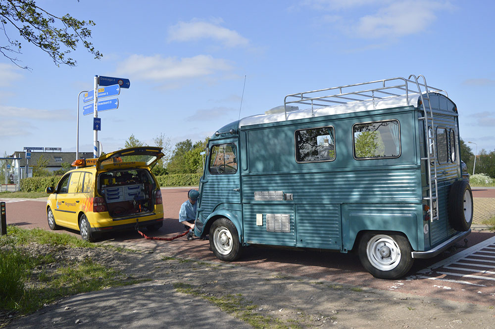 Tja, de bus WAS rijdbaar.... We zij er het weekend mee op pad gegaan. Nadat ik het e.e.a. had nagelopen: olie ververst (motor en V-bak), doorsmeren enz. Helaas na 40 km ter hoogte van Echtenerbrug kwam er veel kabaal onder de motorkap vandaan. Ik kon het niet goed lokaliseren. Dus ANWB erbij. En geconstateerd dat de waterpomp defect was (lagers). Na inspuiten met olie leek het euvel voorbij. Helaas na een paar km rijden keerde het probleem terug. Nogmaals de ANWB erbij en afslepen. Maar de hulpverlener had een beter idee: in de buurt (Sloten) starte dit weekend het Oldtimer-Elfstedentocht en hij wilde ons daar wel even naartoe slepen. Dan zouden we zondag opgehaald worden om naar Leeuwarden te worden gebracht. En zo is geschied. Geweldige service van de ANWB. Gelukkig had ik het Camper-supplement tijdig afgesloten.......