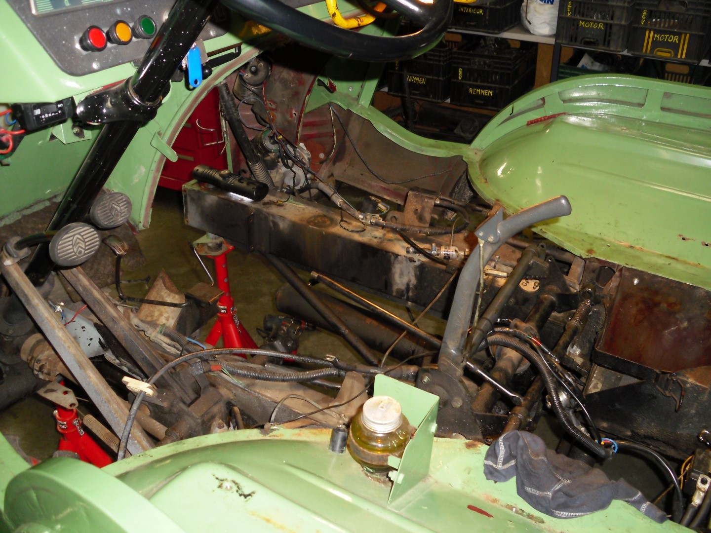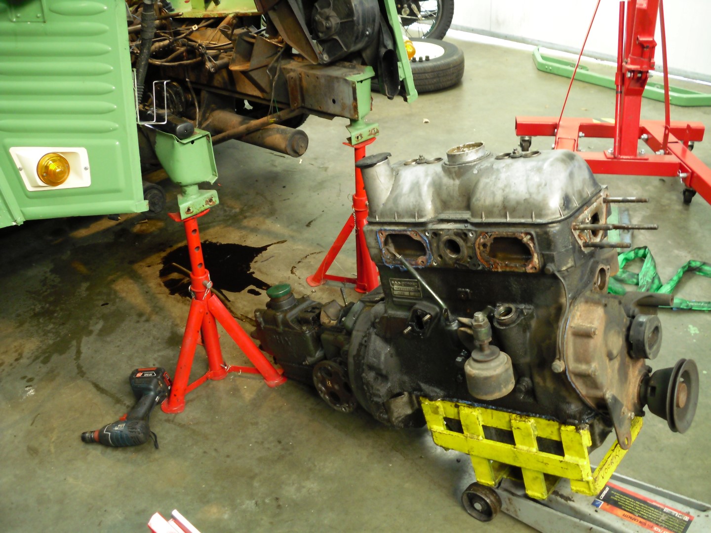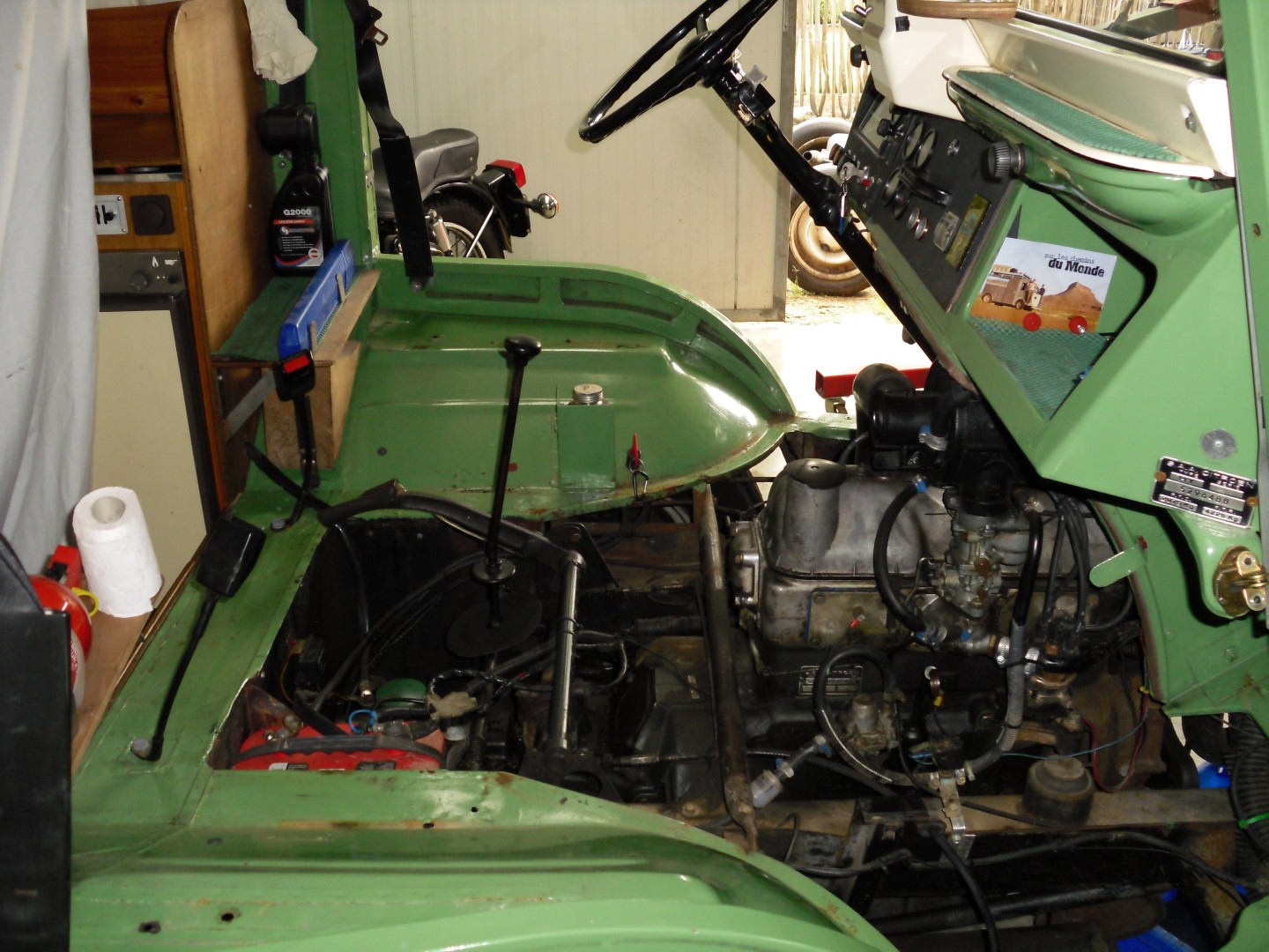 De eerste paar foto's zijn van de uitbouw van het geheel. Ja, ik kon ook de motor apart uitbouwen, maar het leek me niet verkeerd om de zaken wat grootster aan te pakken. We hebben al tien jaar plezier van onze "Cochon", en met de nodige ingrepen moeten daar nog enkele decennia bijkunnen hoop ik!