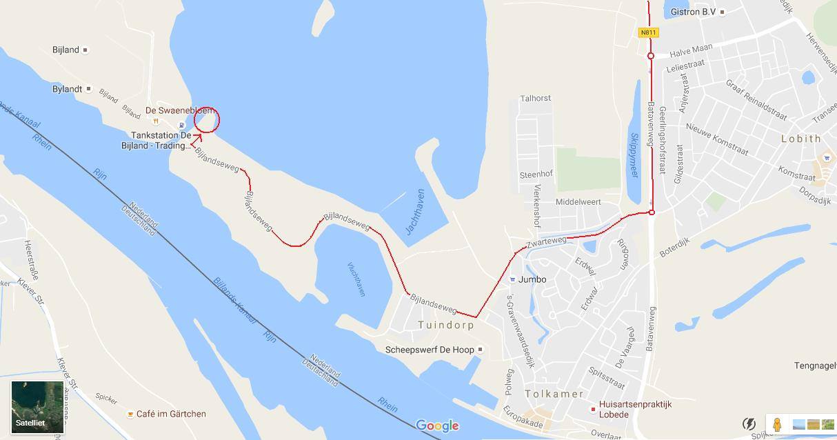 • Einde weg, bij scheepswerf De Hoop, naar rechts, Bijlandseweg