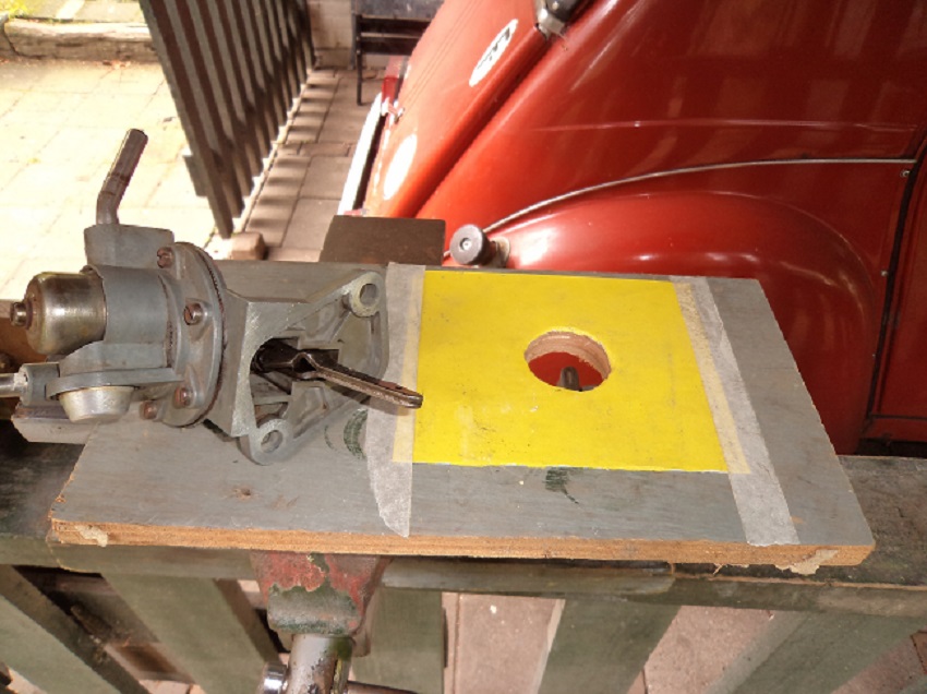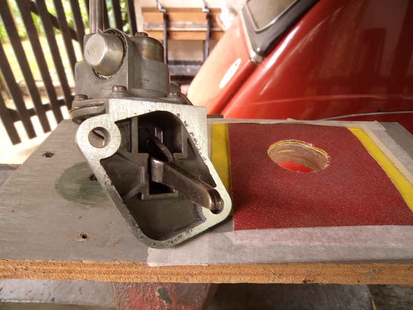 Uiteindelijk die voet dus (langdurig ...) "gevlakt" alsmede de olielekkage bij de uitgeslepen hevel-as-openingen gedicht door beide (holle) asuiteinden nogmaals te stuiken gevolgd door een laagje Wynns Red Gasketmaker.