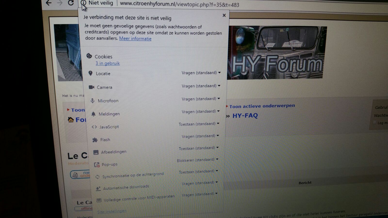 Ik kreeg net van Marco door dat bij hem Chrome (browser) een melding geeft dat de verbinding niet veilig is. Dat klopt op zich, want er is geen HTTPS/SSL beschikbaar en dat is al jaren zo.