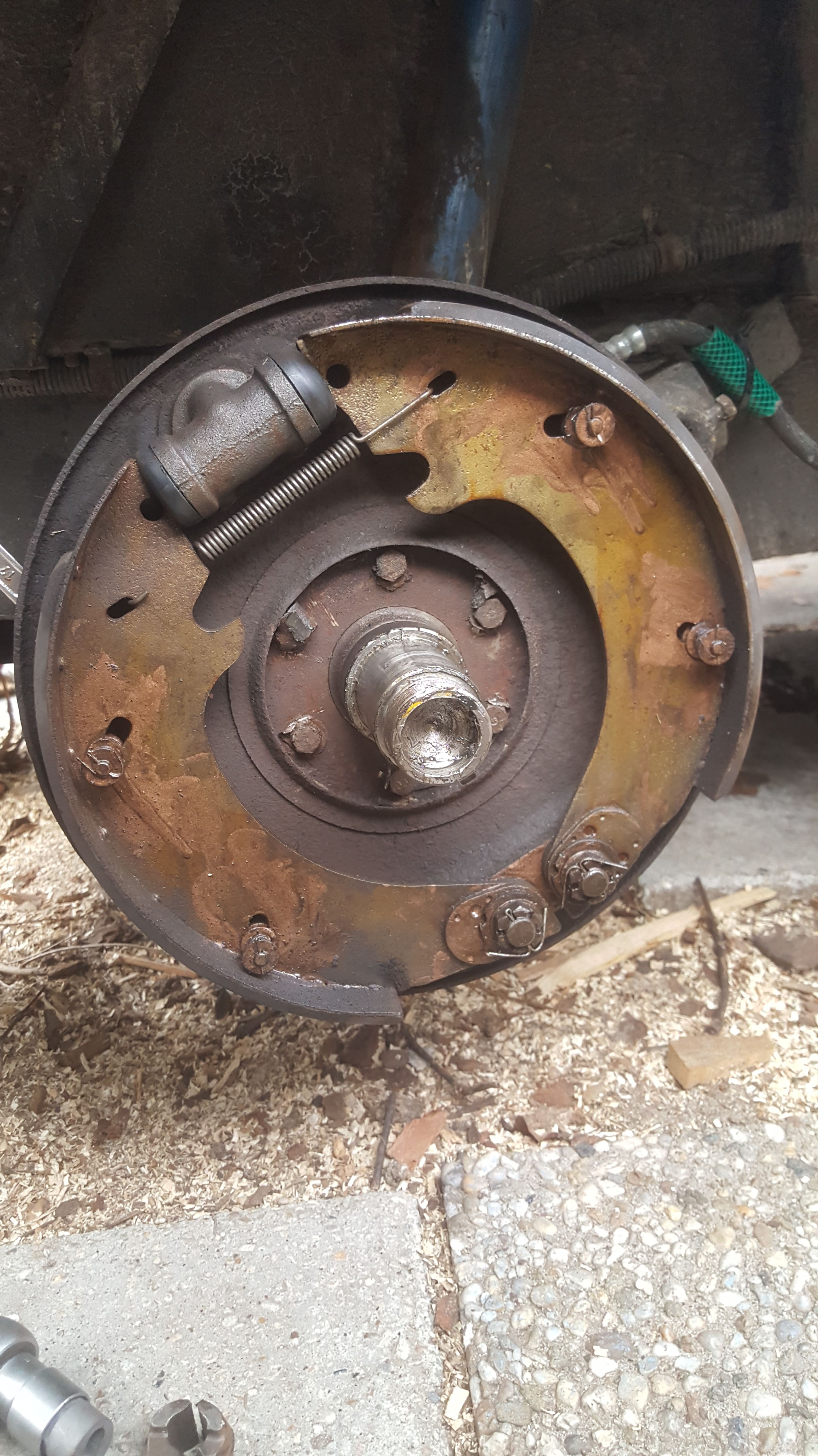 Tijdens het Pinksteren Hy weekend hebben mogelijk wel 10 deskundigen mij (continu) bijgestaan/omringd bij het vanaf de grond opbouwen van de remmen met letterlijk fonkelnieuwe onderdelen. We hebben samen alle wielen gedaan. Het was werkelijk een onophoudelijke stroom van (on)gevraagde adviezen en tips die ik kreeg tijdens het klussen, vooral ongevraagde trouwens :wink: . We zijn bijna 2 volledige dagen bezig geweest. En toch was het dus niet goed gesteld.