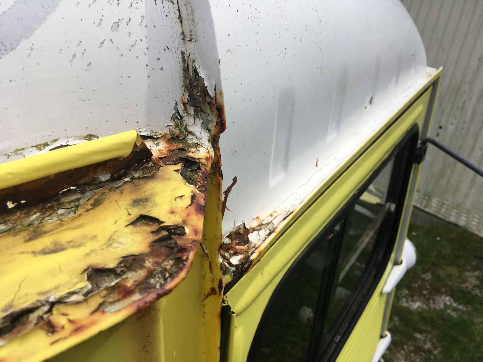 De staat was destijds ongeveer gelijk aan jouw bus, misschien een klein beetje beter. Met die schilderbeurt heb ik het nog 8 jaar volgehouden, daarna is hij wel volledig in restauratie gegaan. Verf zal de meeste roest niet stoppen.