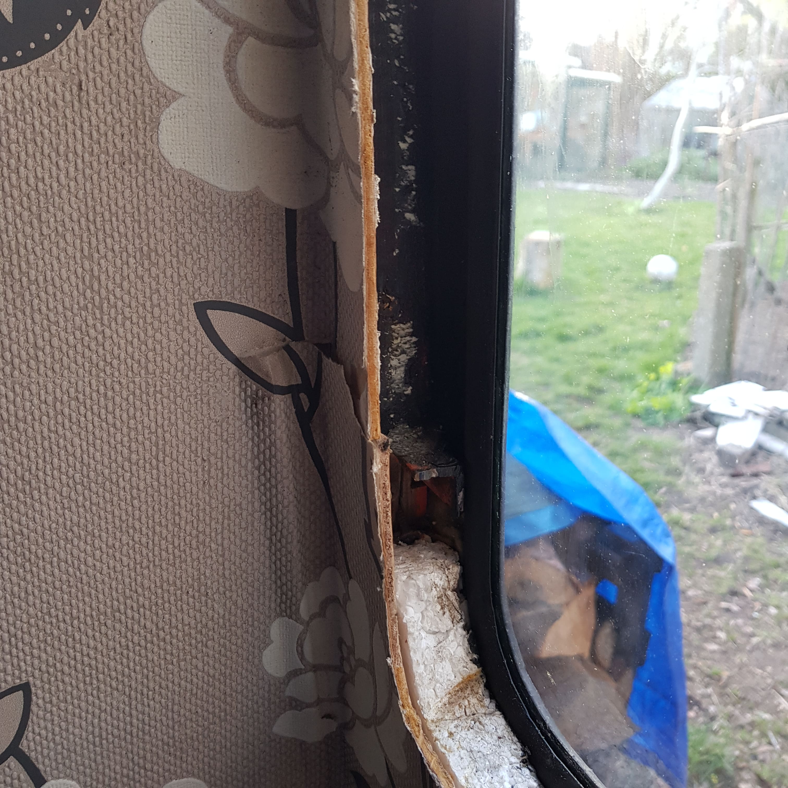 Een van mijn 2 zijramen is gebarsten (net zichtbaar op de foto). Daarnaast vind ik `m vrij smal/klein. Ik heb uitgebreid gezocht naar precies zo'n type raam maar die zijn helaas niet meer te vinden. Daarom komt nu het idee bij me op om een groter raam te monteren / uit te slijpen. Heeft hier iemand ervaring mee? En waar zou ik een stuk glas/plastic? en passend rubber kunnen krijgen? (het raam hoeft dus niet open te kunnen). Ik weet dat ze bij de grotere kamperzaken een uitgebreid assortiment hebben van all inclusive ramen maar dat zoek ik dus niet.