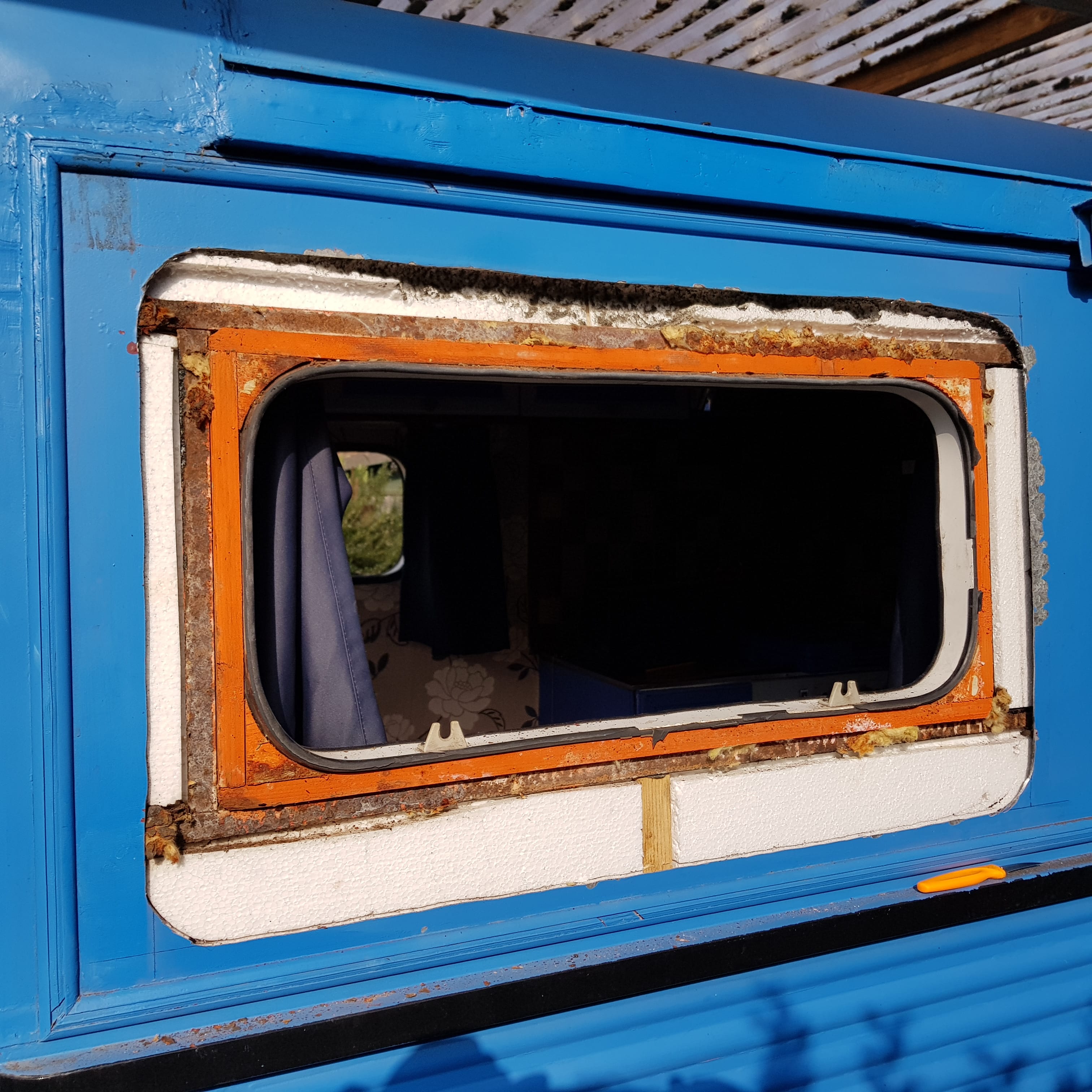 Een van mijn 2 zijramen is gebarsten (net zichtbaar op de foto). Daarnaast vind ik `m vrij smal/klein. Ik heb uitgebreid gezocht naar precies zo'n type raam maar die zijn helaas niet meer te vinden. Daarom komt nu het idee bij me op om een groter raam te monteren / uit te slijpen. Heeft hier iemand ervaring mee? En waar zou ik een stuk glas/plastic? en passend rubber kunnen krijgen? (het raam hoeft dus niet open te kunnen). Ik weet dat ze bij de grotere kamperzaken een uitgebreid assortiment hebben van all inclusive ramen maar dat zoek ik dus niet.