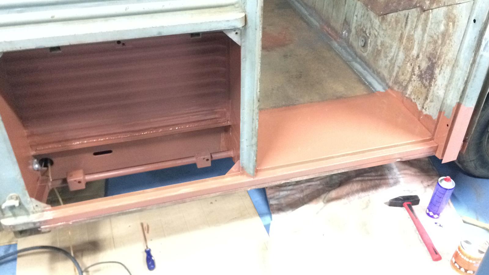 Nog een kant. De keuze is gevallen voor een industriële verf gebruikt op o.a. olieboorplatformen en windmolens op zee. Dat is prima voor de binnenschermen dacht ik zo.