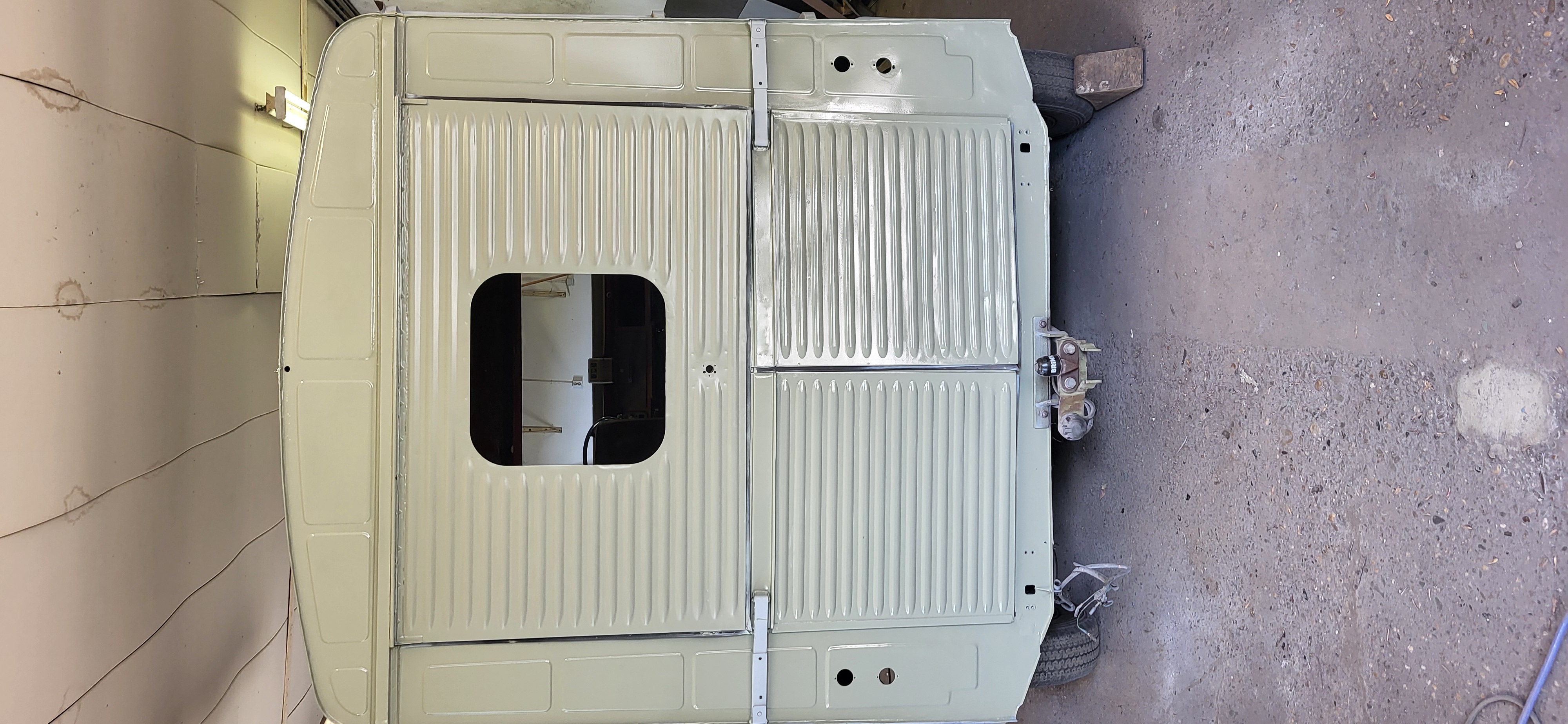 De slechte stukken zijn allemaal vervangen zoals, achterste kriksteun met het bovenliggende plaatwerk. Het bovenste omegaprofiel en de regengoot verwijderd. Achterspatbord uitgedeukt en een forse deuk op de de hoek tussen achterzijde en rechterzijkant uitgetrokken en gerepareerd.