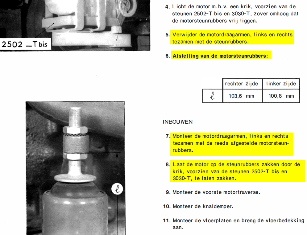 6. Afstelling van de motorsteunrubbers:
