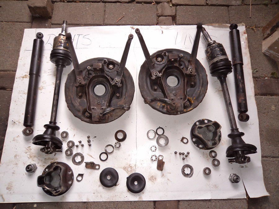 Tevens is - dankzij deze exercitie - gebleken dat (in ieder geval één van) de stofhoe(s)(zen) van een/de homokinetische koppeling(en) moet(en) worden vervangen. Is nog een leuke klus want beide stofhoezen (homokinetische koppeling alsmede tripodehuis) kunnen enkel worden verwijderd door het sterstuk (jawel, dat ding met die drie asjes waar de tripode-kogels op draaien) van de as àf te persen ...
