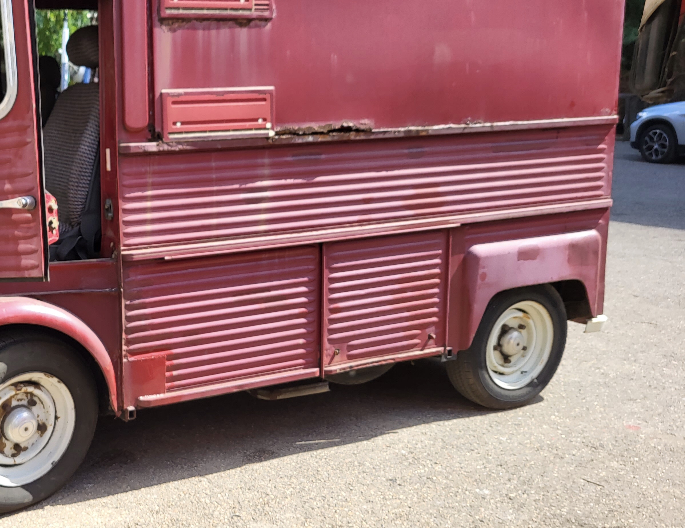 Ook de onderste golfplaat tussen voorwiel en reservewiel deksel gaat vervangen worden.