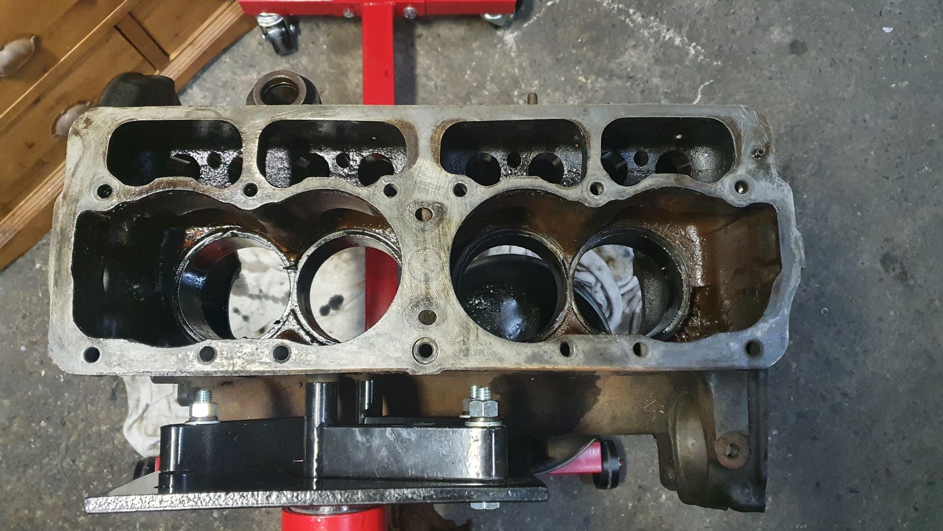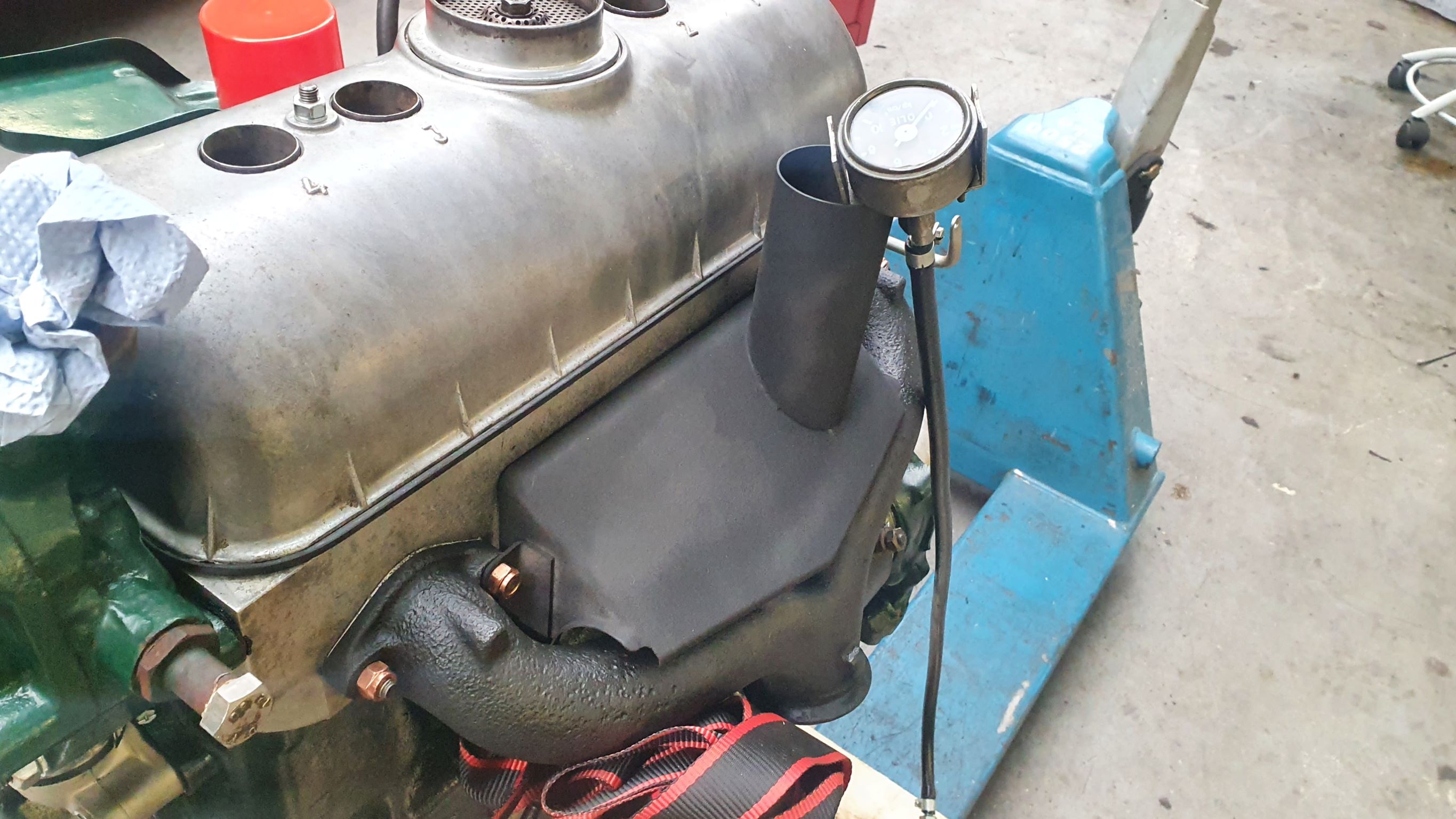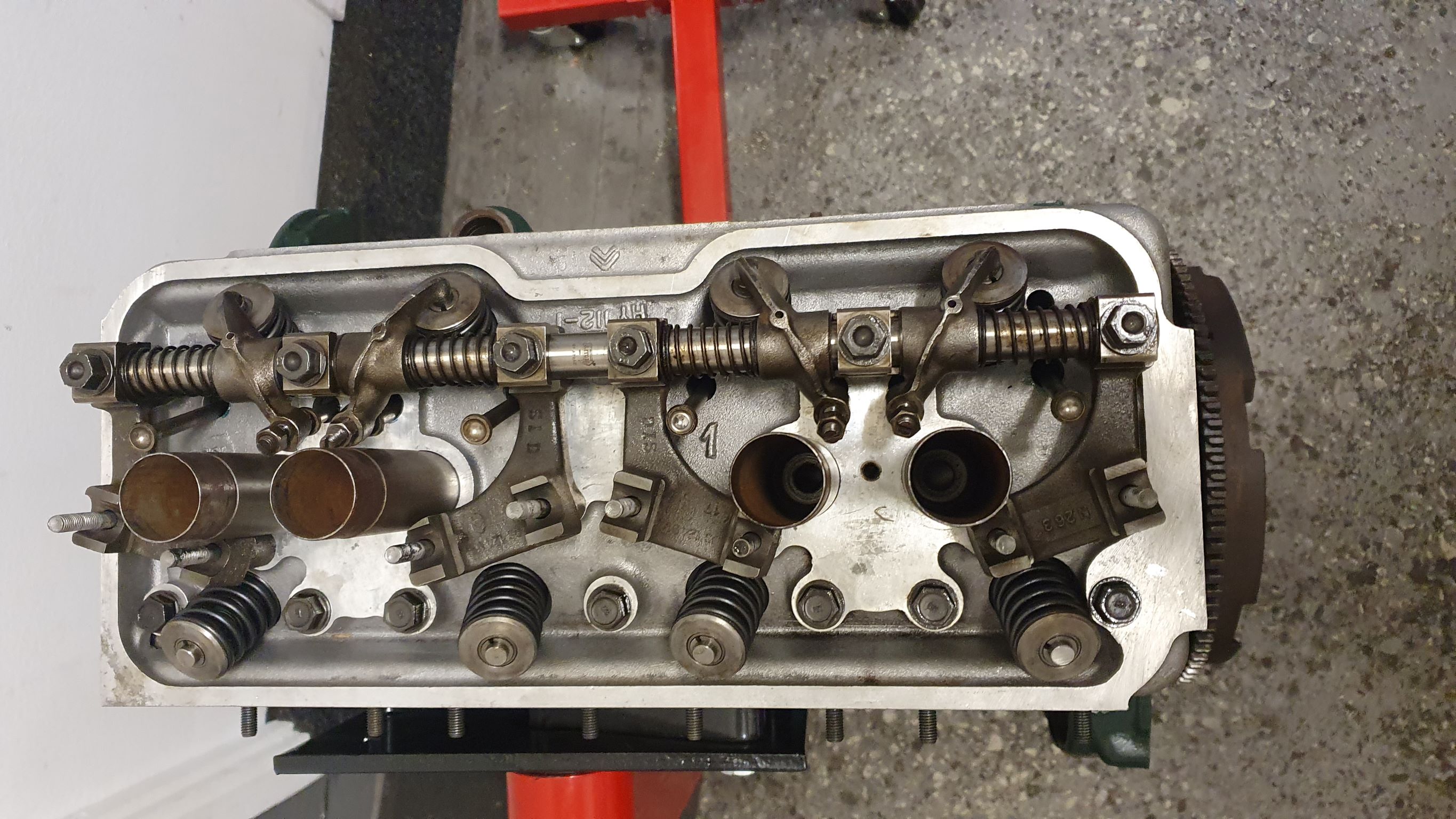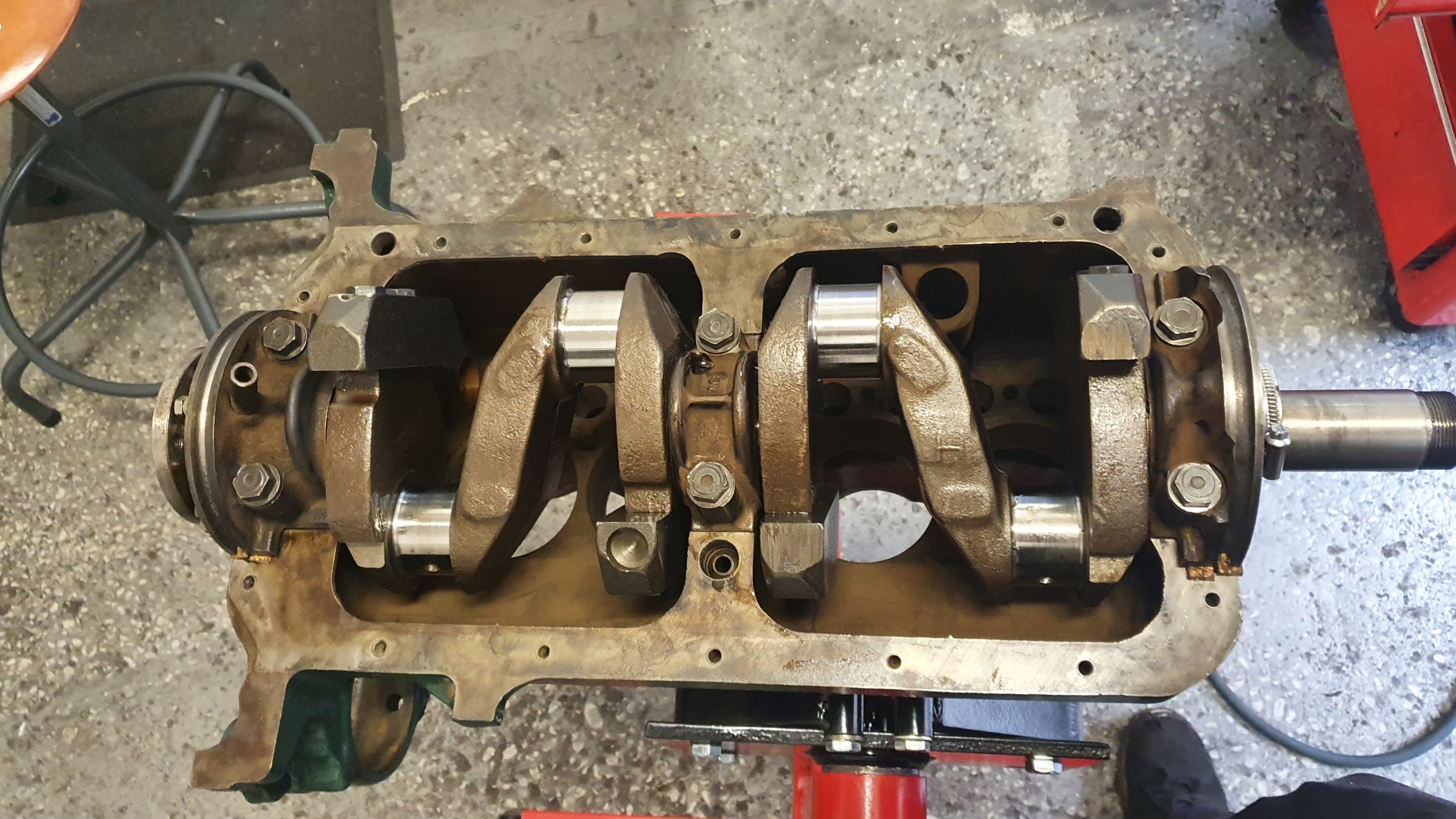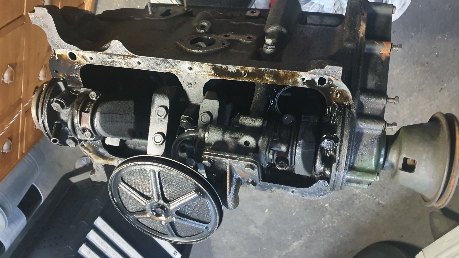 Blok opgebouwd met nieuwe Bolkop zuigers. allemaal nieuwe STD lagers. Nieuwe ketting tandwielen waren nog goed. Oliepomp gereviseerd nieuwe tandwielen en gevlakt en nieuwe pakkingen.