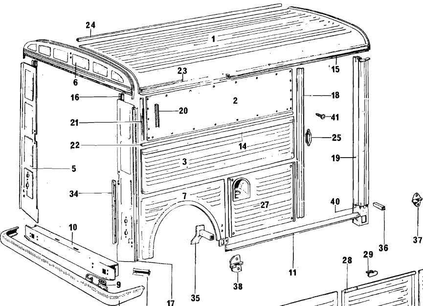 als je Pos 11 bedoeld op bijgaande tekening dan heb je pech, die heeft het magazijn niet (nieuw) en ik denk ook niet gebruikt. (het is onderdeel 7-742/11 lengte=1.531 mtr.)FerrHy schreef:Weet iemand of de onderste rand waar de deur in loopt in het HY Team magazijn verkrijgbaar is?