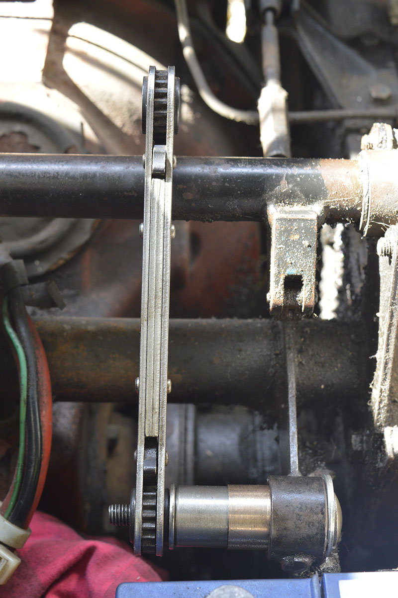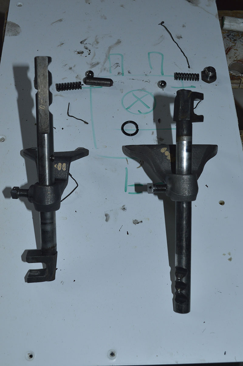 Tevens de beide bronzen lagertjes van de schakelstang vervangen. Want deze rammelde nogal. Een van de lagertjes was geheel doorgesleten aan de onderkant(!).