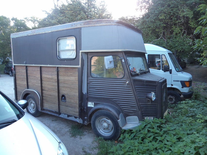 Onderweg redelijk wat (franse) vintage-voitures gespot, veelal gestald bij een garage annex sloperij (en zoals altijd in het voorbijrijden nèt niet het fototoestel in de hand ...). Vooral véél rijdende Renault-4-tjes, 2CV6-jes, paar Acadyanes, enkele DS-en maar niet één HY.