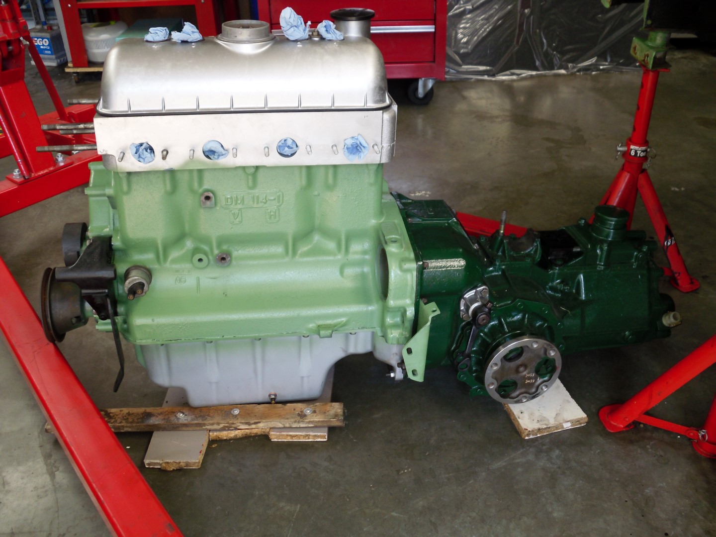 Nog enkele plaatjes van de vorderingen, ik heb gisteren de gereviseerde motor en bak als één geheel ingebouwd. Bloed (letterlijk), zweet (en niet alleen van het zomerweertje) en net geen tranen :-)
