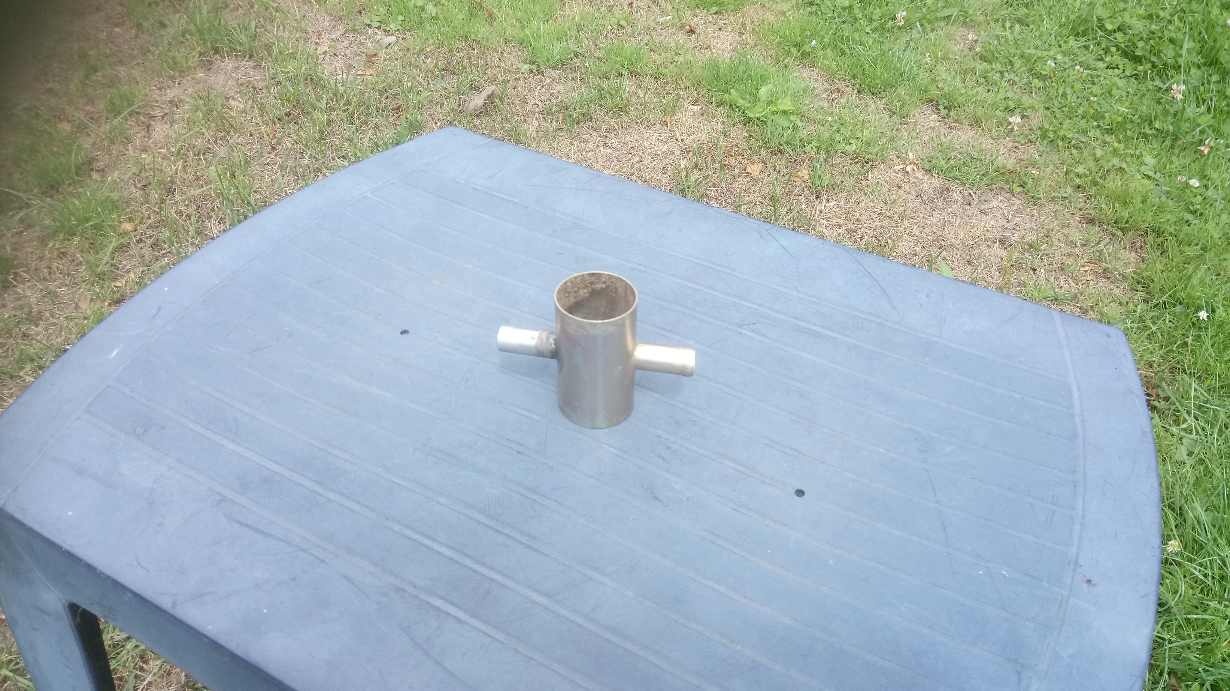 Ik heb recent ook een T-stuk ingebouwd en de buitenkant even in de lasprimer gezet die ik nog had.