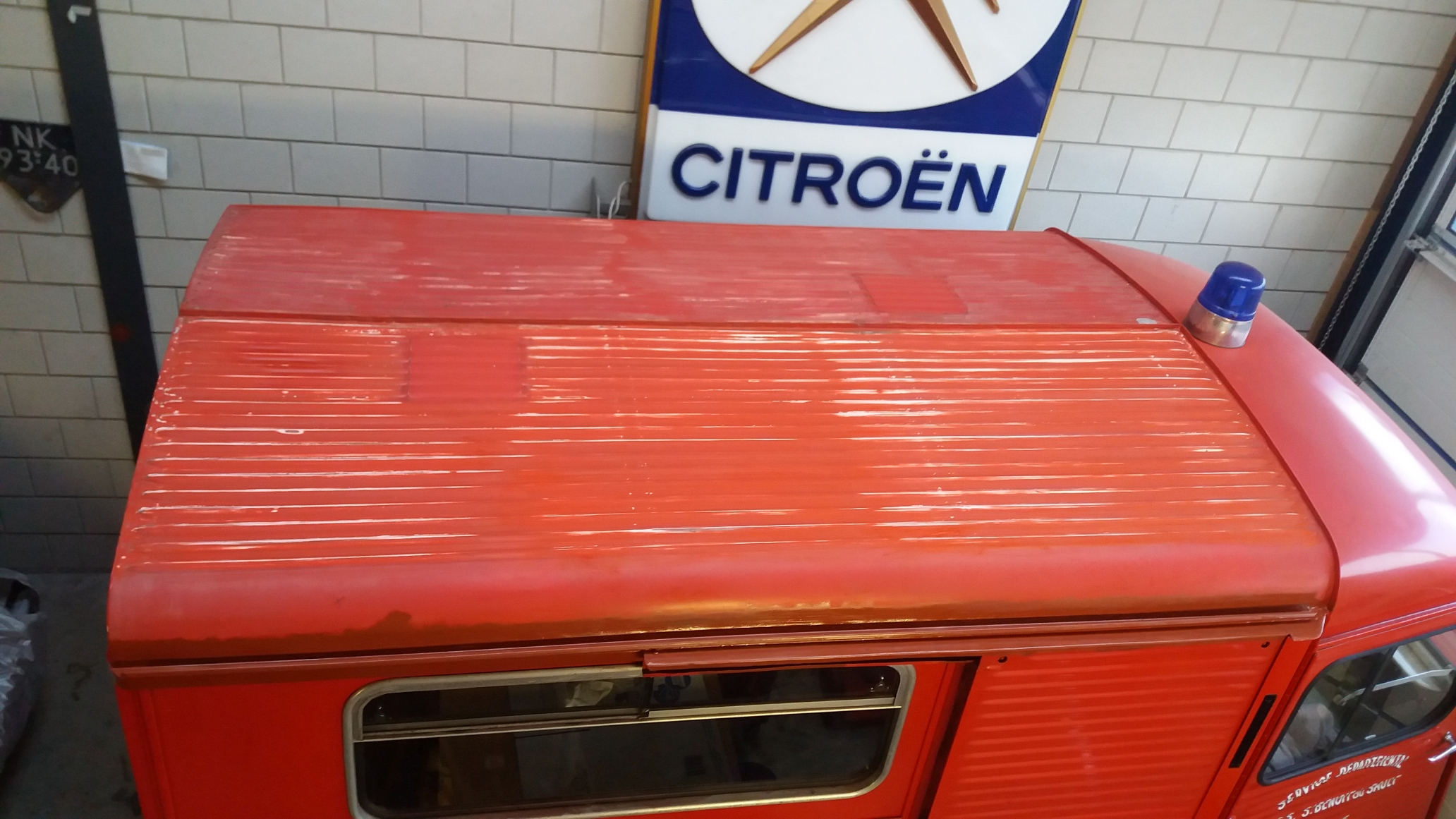Wat leuk is om te zien is dat het dak al 4x gelakt was. Zilvergrijs uit de fabriek (AC109), daarna meteen rood bij Carrier die de bus omgebouwd heeft tot brandweer ambulance. Toen werd het dak wit omdat ze het wat warm kregen denk ik :D en later weer rood.