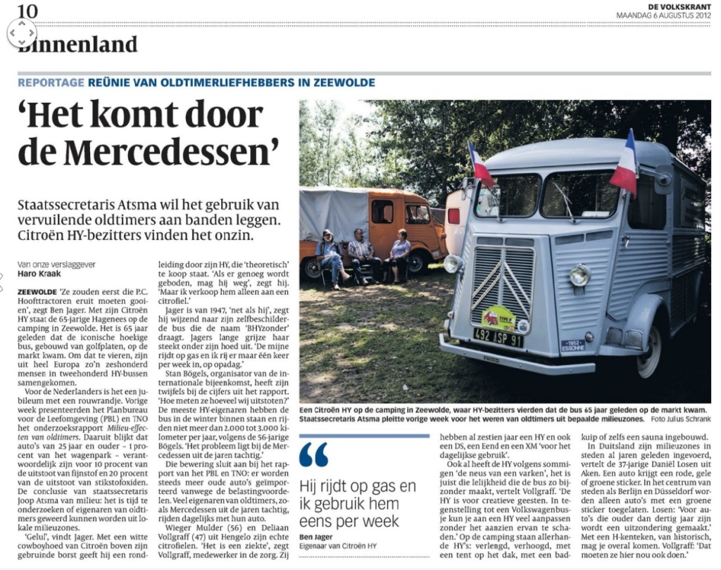 Sinds 1987 HY rijder. Sinds 1991 eigenaar van een HY van 1967, van de 'Amsterdamse serie'. Daarnaast rij ik een Méhari uit 1977. Dagelijks vervoer: wisselend een Acadiane van 1983 en een Citroën Xsara Picasso 1.6 van 2007. Groeten, Henri.