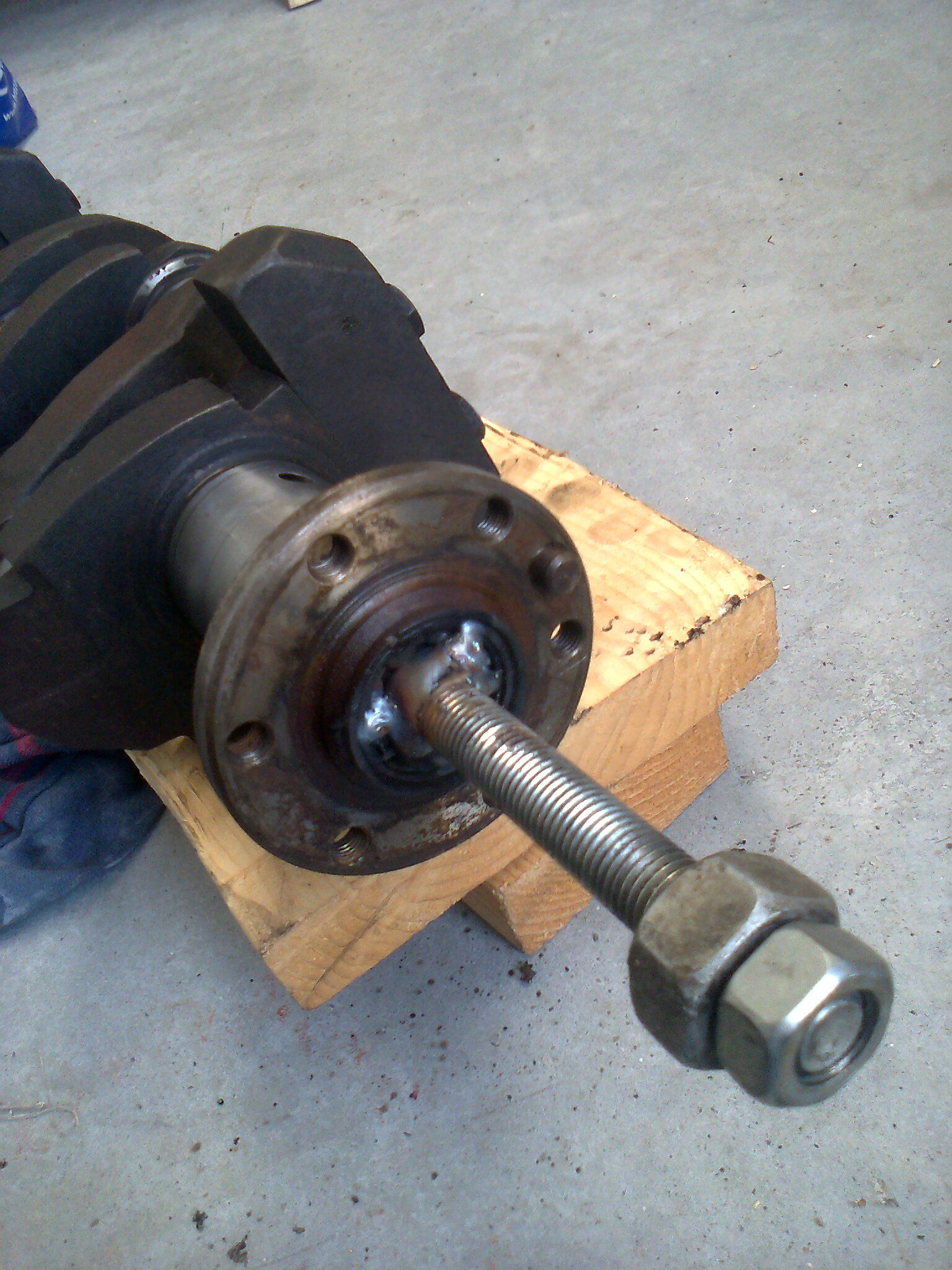 Ik heb een M16 draadeind op de binnenring van het verroeste lager gelast,