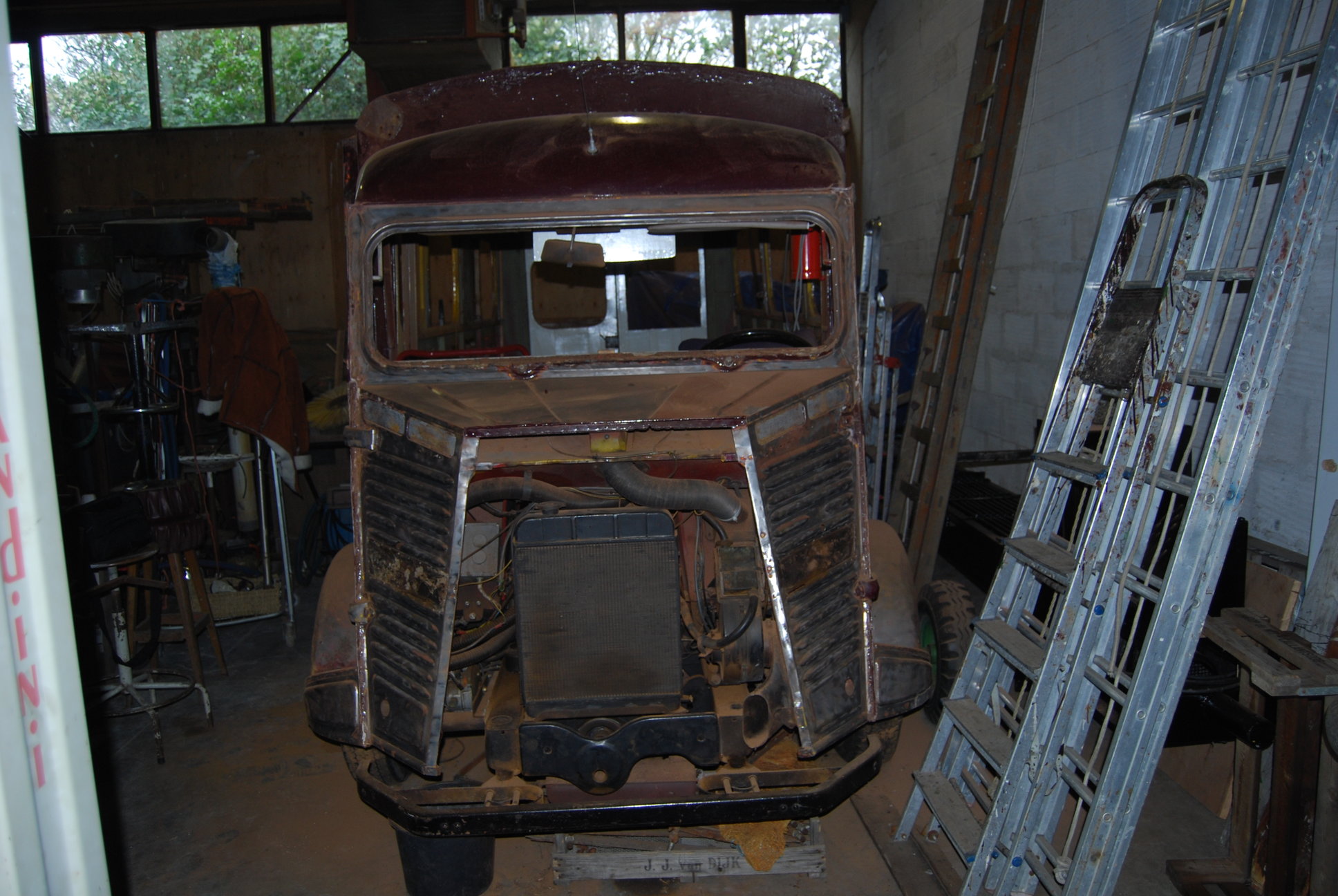 De bus is al voor een groot deel kaal gemaakt, er zijn dus geen verborgen gebreken meer, alles ligt open en bloot!