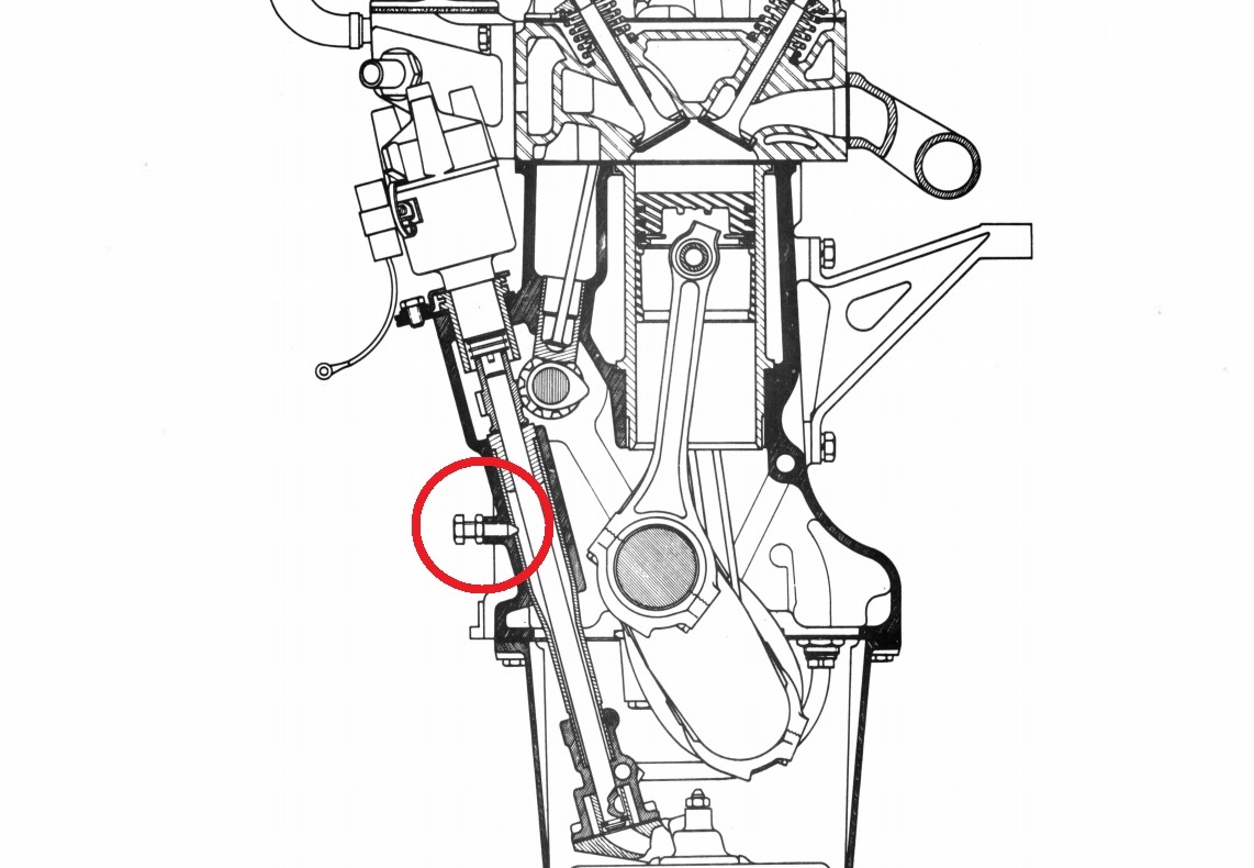 Die dikke bout houdt het oliepompmechaniek op z'n plek heb ik pas geleerd