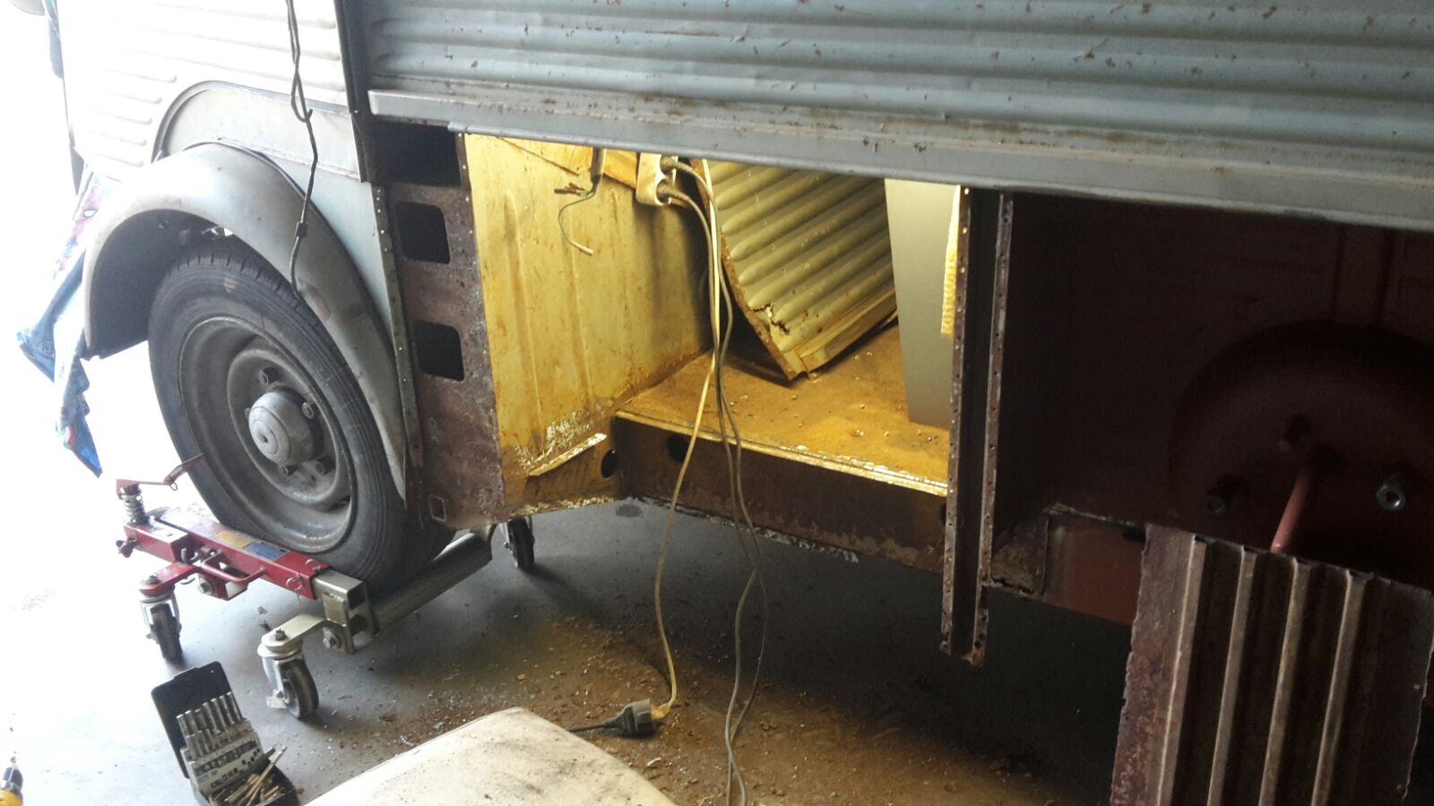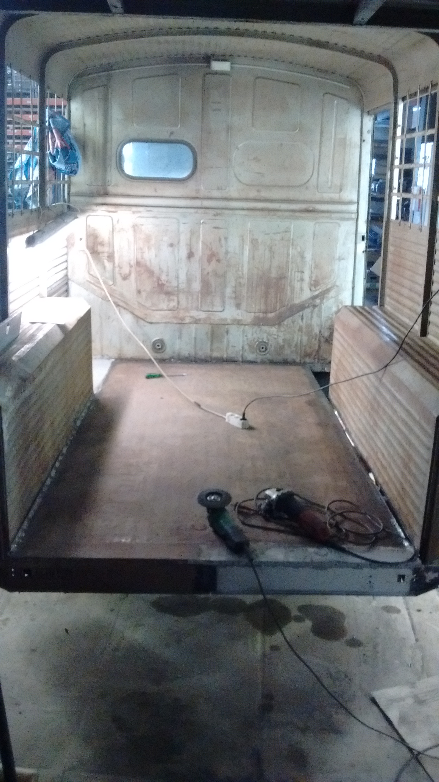 Daarna de bodem stralen en de laadvloer flink in de antiroest zetten zodat die er weer even tegen kan.