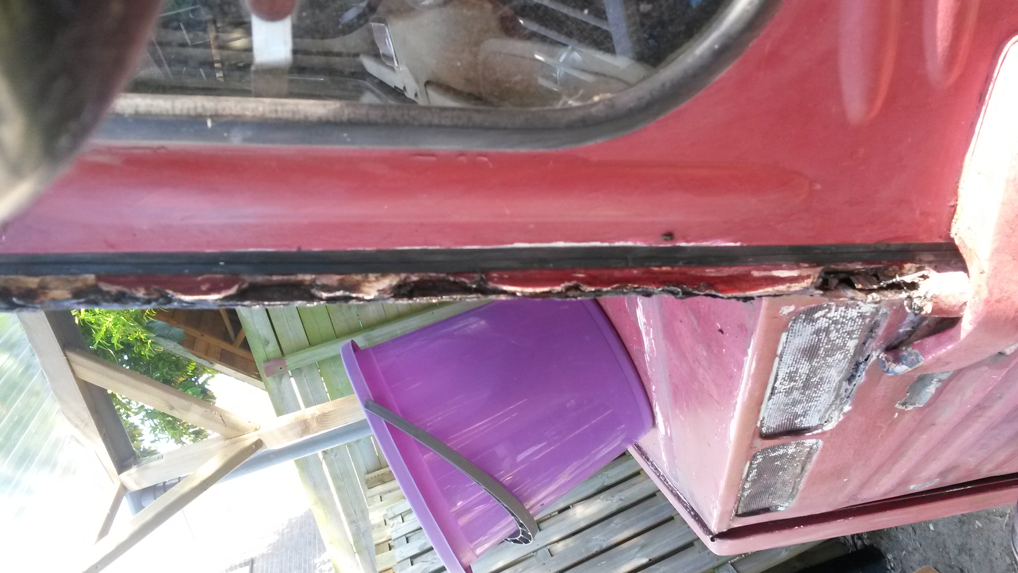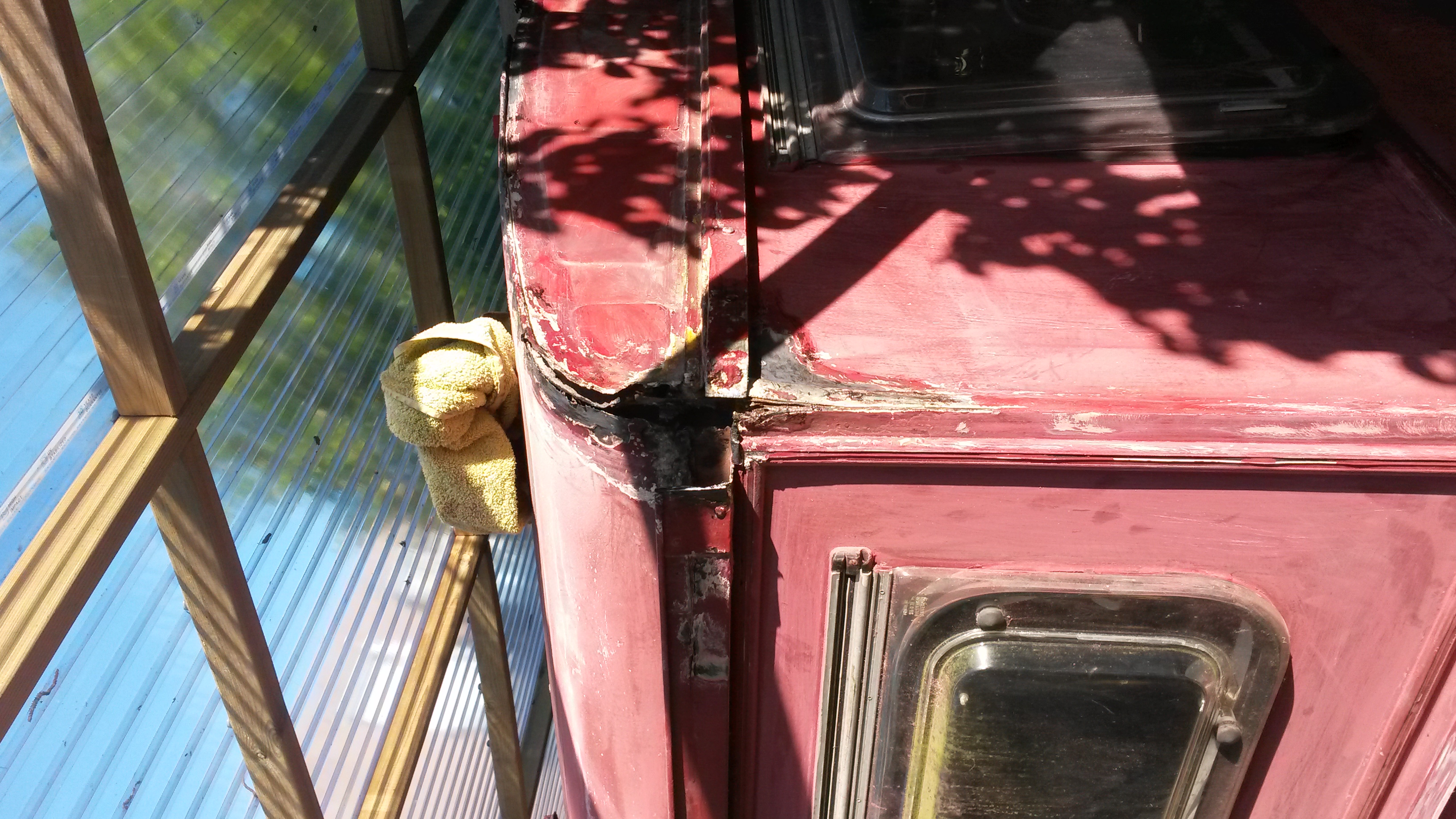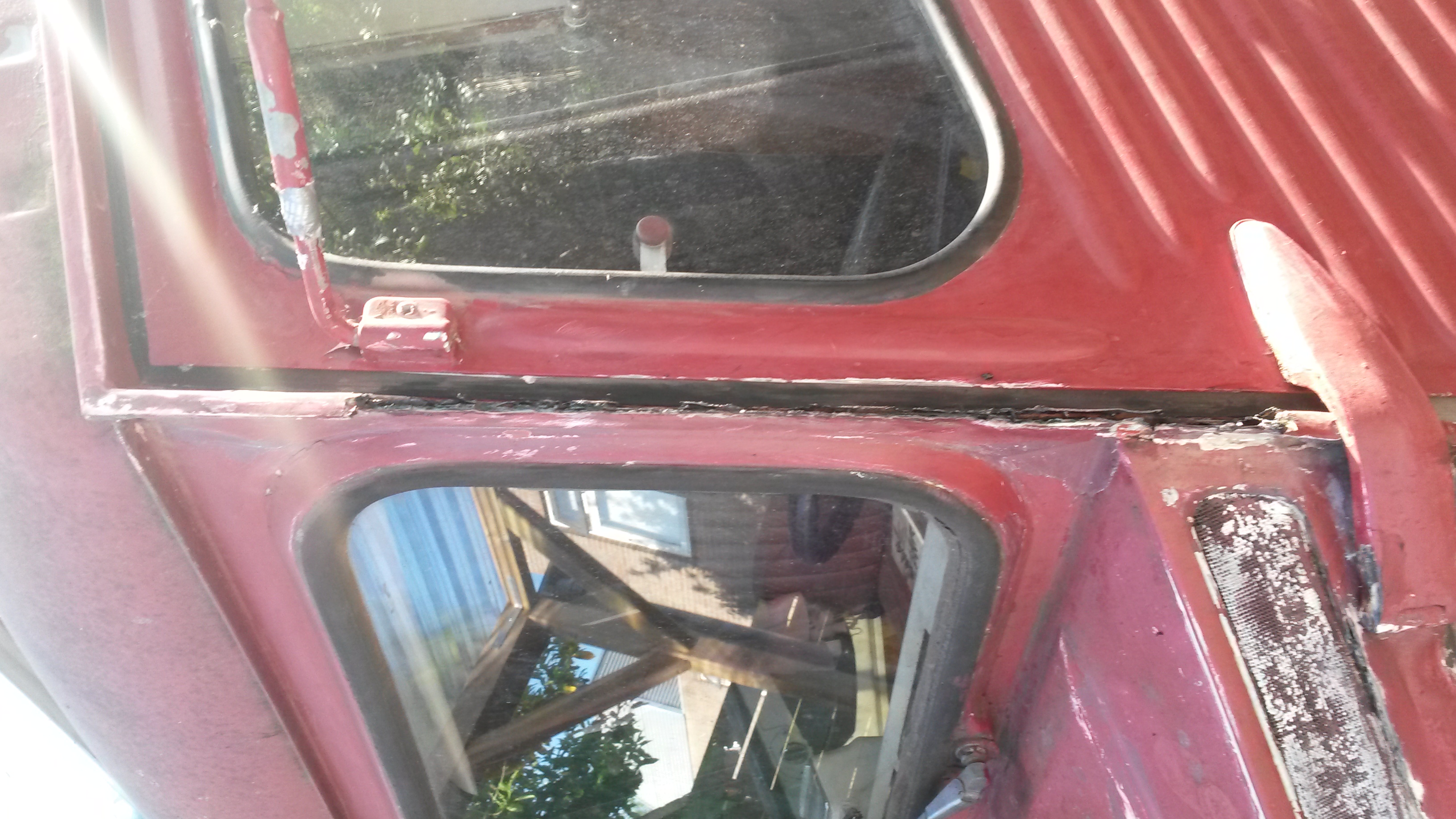Oei. Dat gaat dan een probleem worden. Ik was niet van plan duizenden euro's uit te geven aan het fatsoeneren van plaatwerk. Ken iemand een lasser in de buurt van Eindhoven die het puur functioneel in orde kan maken (geen lekkages meer)? Cosmetisch is niet zo van belang. Met onze bus winnen we de schoonheidswedstrijd sowieso al niet.
