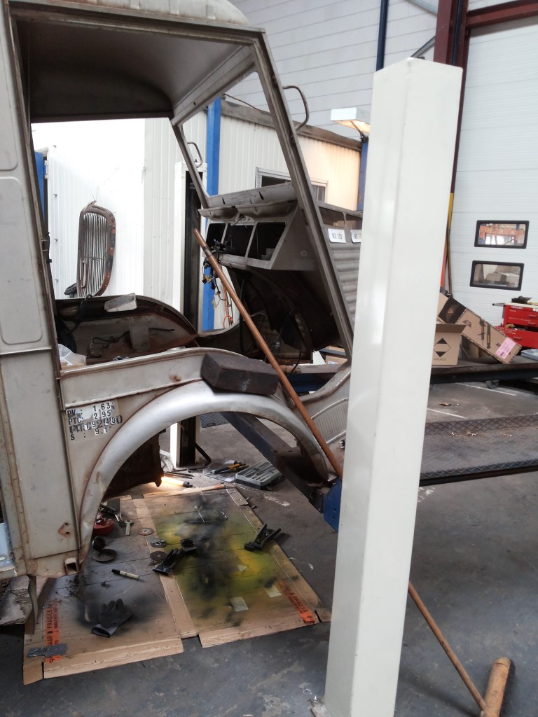 ik ben toevallig juist bezig met herstel van plaatwerk rondom de doorvoer van de uitlaatpijp, zij het op bescheiden schaal. Met paard er (nog) uit is dat inderdaad gemakkelijker. Aanvankelijk had ik het verroeste stuk er uit voldoende uitgesneden, dacht ik , maar bij het lassen vielen er toch gaten in; derhalve is het gat 2x zo groot geworden als op de foto te zien is, opgevuld met een tweede stukje plaat.
