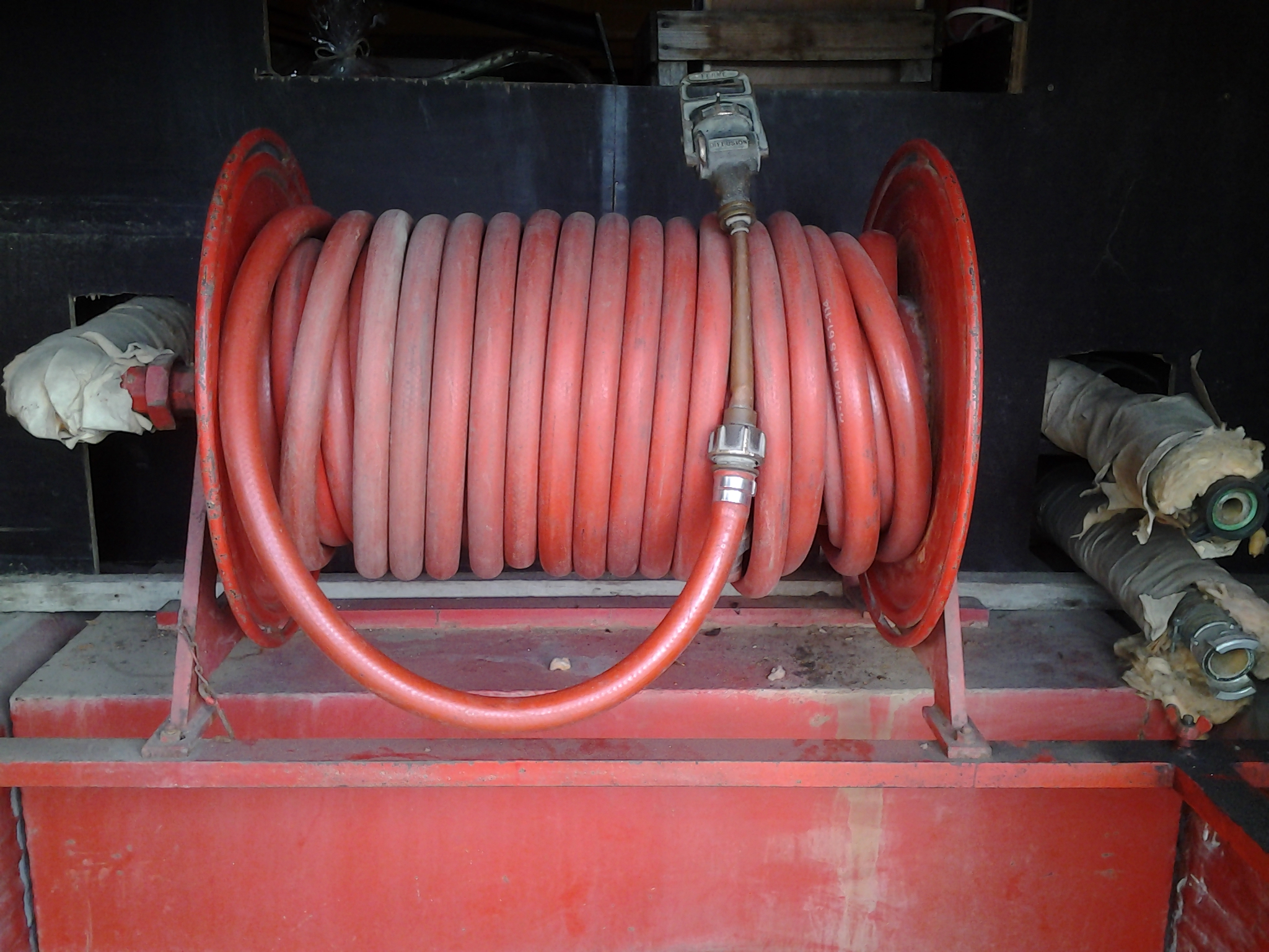 Te koop : haspel met 30 meter brandweerslang incl. spuit, aansluitingen en montage frame uit mijn brandweerbus.