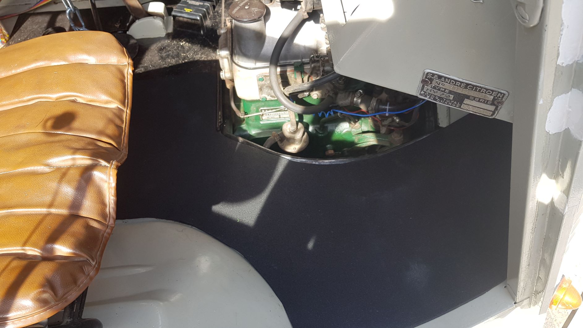 Verder heb ik een leren hoes aan de buitenkant van de motorkap (dank nog Edwin