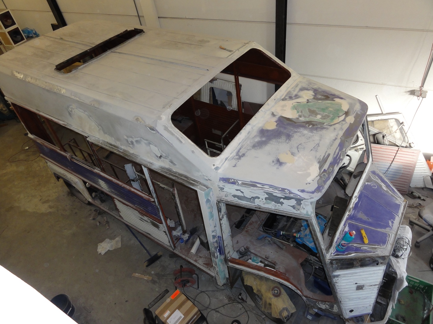 Ik heb de camper helemaal gestript, en de roest aangepakt, dat was echt veel meer werk dan ik dacht, en de moed zakte soms in mn schoenen.
